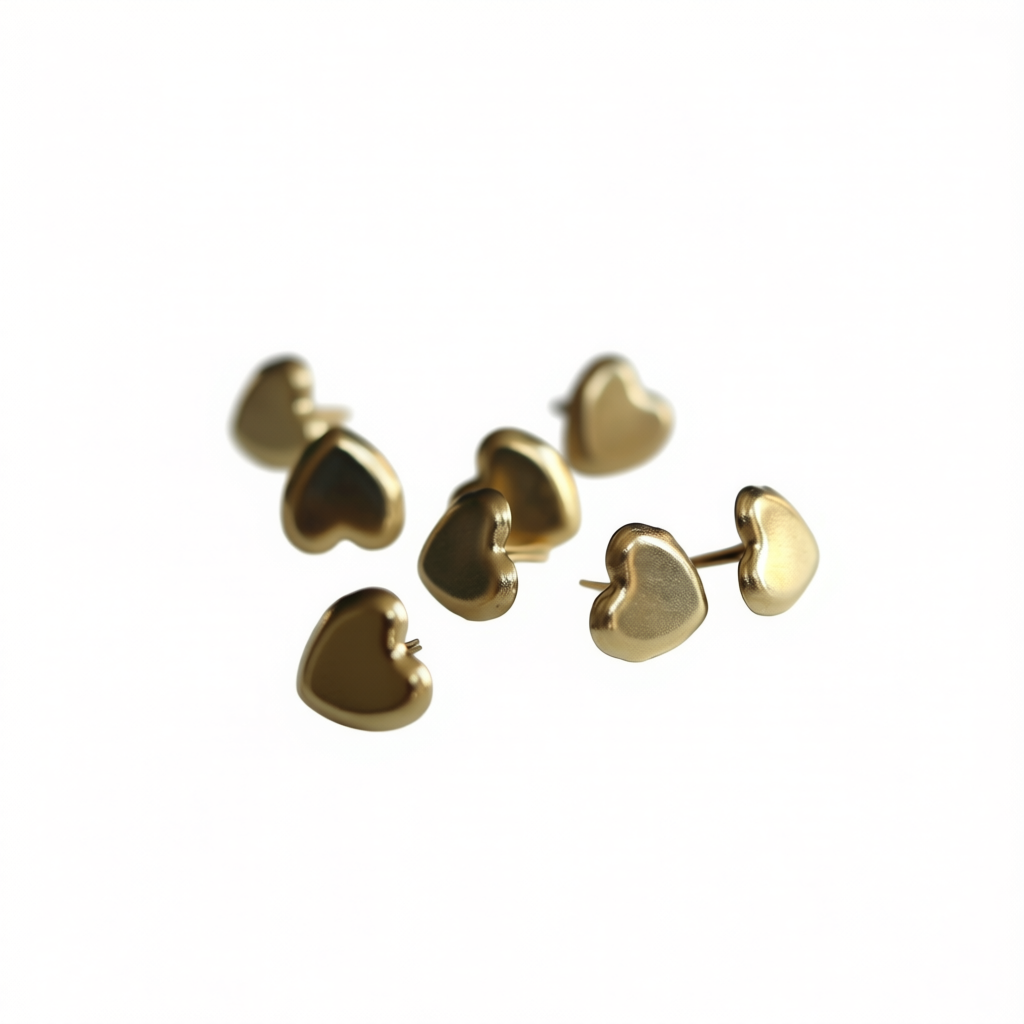 Hartvormige, gouden splitpennen (25 stuks). Formaat: 1,2 cm (lengte) x 0,3 cm (breedte).
