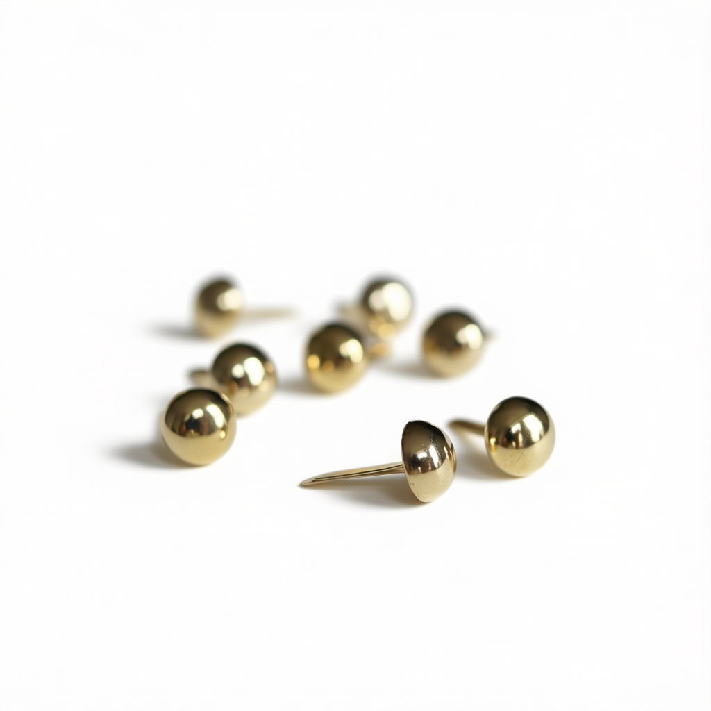 Ronde, gouden splitpennen. Formaat: 1,2 cm (lengte) x 0,3 cm (breedte) x ⌀ 0,8 cm (kop).